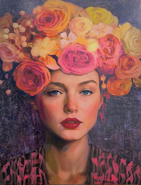 Considered an abstract-figurative artist, the paintings created by Richard Burlet are born of an inspiration that is French by inclination and Viennese by influence. The complex imagery of Burlet’s figurative paintings pays homage to a tradition in art that reigned supreme in Vienna in the late 1800s. The art, architecture and design of Vienna’s “Golden Age”, and the highly praised works of Gustav Klimt, are the greatest influences to Burlet’s artwork. Burlet’s paintings are richly colored compositions in collage and oil and each displays a brilliant pastiche of ornamental detail that does not simply embellish the art, but becomes its content. His palette often reflects his affinity for red and purple – strong colors – and he strives for “a contrast of colors, of heat, contrast between some delicate, graceful faces, and an intense and powerful set of colors.” For Burlet, the interplay of figure and background, flatness and depth, object and image is the key to heightening the experience of his creations. His paintings evoke a dreamlike, floating state in which fantasy liquefies the world, tinting and bending to its own desires. It is in this approach to his artwork that Burlet’s paintings have an affinity with the most classic of figurative studies while also harkening to the psychedelic nature of 1960s art and design. Burlet’s sensual figurative works have an abstract quality achieved by his use of collage and heavy paint on canvas. There is flatness to the imagery, yet rich dimension is created by myriad colors laid one on top of another with 24-karat gold and silver leafing then applied giving the canvas tone and texture. He uses gold and silver “for it’s light – no color can compete with it. It is an element that naturally does not belong on the painting, and therefore is thrilling to try to include it.” Another “material” that Burlet works with is memories. “The more distant they are, the more interesting they get, because they are distorted by time and living. They reappear through certain colors, certain shapes, even if they remain hazy.” The art is at once classic and exotic, sensual and tame. The figures appear as if in a dream, the colors intertwine with collage to create both mood and a multi-dimensional surface.